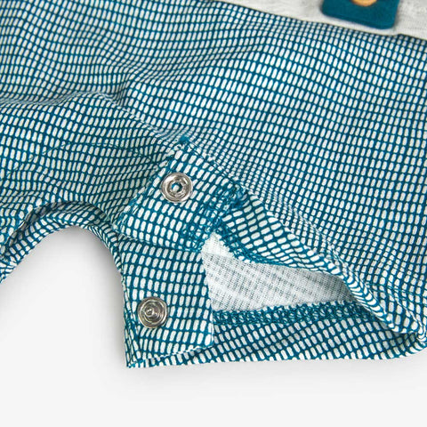 Pagliaccetto della Linea Abbigliamento Bambino Boboli, con finte bretelle applicate e stampa colorata sul davanti, abbottonatura sul fondo e sul dietro.