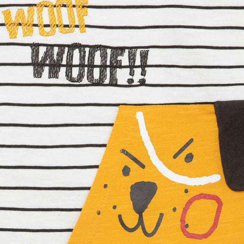 Maglietta della Linea Abbigliamento Bambino Tuc Tuc, con tasca sul davanti  e ricami in contrasto di colore.