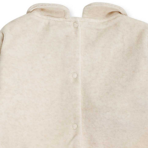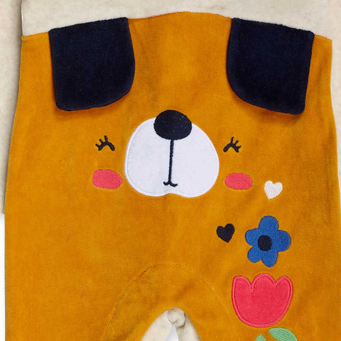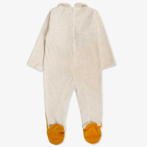Tutina in ciniglia della Linea Abbigiamento Bambina Tuc Tuc, con colletto rotondo, abbottonatura sul dietro e sul fondo. Sul davanti applicazioni in tessuto e ricami colorati.