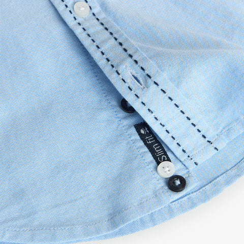 Camicia a manica lunga della Linea Abbigliamento Bambino Boboli, tessuto oxford, con impunture in contrasto di colore.