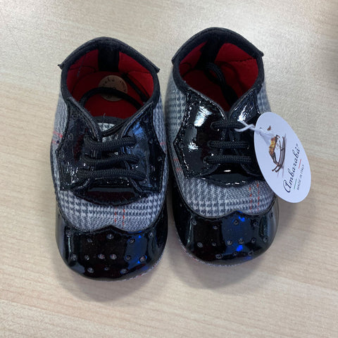 Scarpine della linea abbigliamento bambino Ambarabà, in morbidissimi materiali e con lavorazione artigianale.