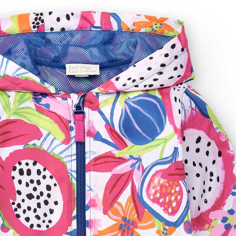 Giubbotto antivento della Linea Abbigliamento Bambina Tuc Tuc, con cappuccio, chiusura zip e fantasia floreale all-over.