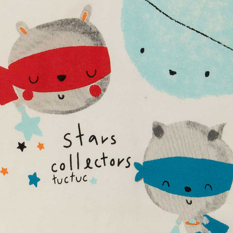 Completo due pezzi della Linea Abbigliamento Bambino Tuc Tuc, con maglietta con stampa multicolor e pantalone morbido a tinta unita.