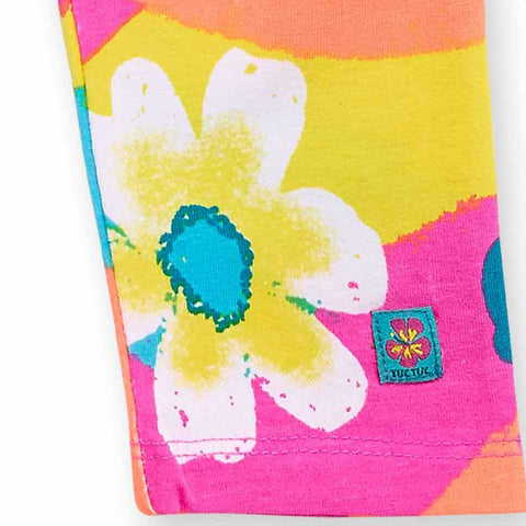 Leggins della Linea Abbigliamento Bambina Tuc Tuc, con fantasia floreale a tinte fluo.