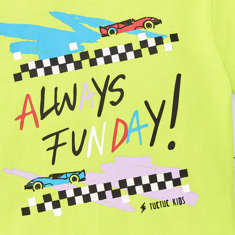 Completo due pezzi sportivo della Linea Abbigliamento Bambino Tuc Tuc, con stampa colorata sulla t-shirt.