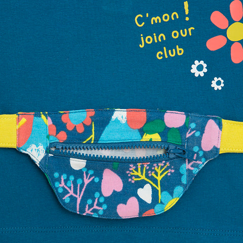 Maglietta della linea abbigliamento bambina tuc tuc, collezione Hikers. Con appliaczione di finto marsupio sul davanti.