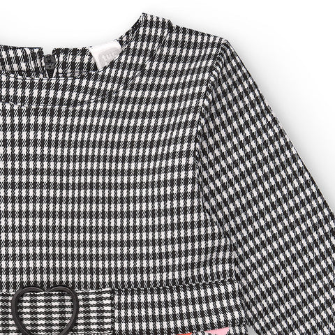 Abito della Linea Abbigliamento Bambina Tuc Tuc, con fantasia a quadretti all-over. Cinturino in vita con fibbia sul davanti.