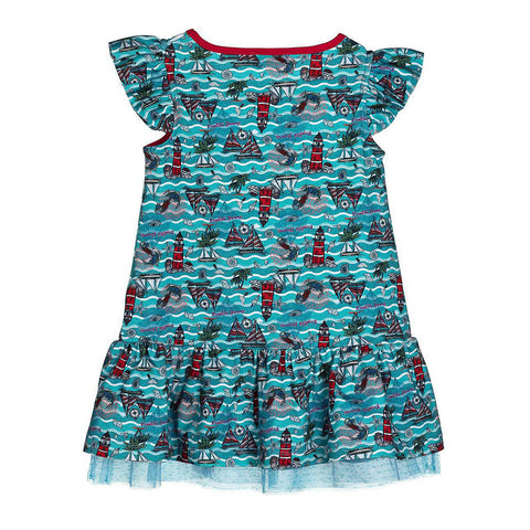 Abito della linea abbigliamento bambina Rosalita Senoritas, con rriccetti sulle spalline e connellina con bordo di tulle.