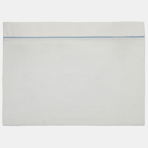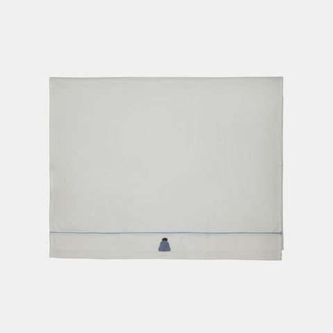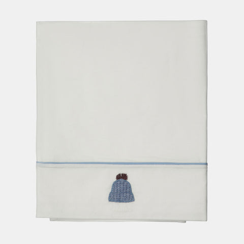 Lenzuolino per carrozzina,della Linea Bambino Lalalù, con bordino celeste e applicazione di cappellino in maglia.