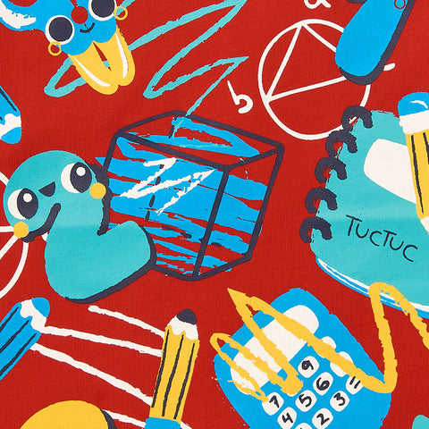 Maglietta della Linea Abbigliamento Bambino Tuc Tuc, con bottoncini sulla spalla e stampa colorata sul davanti.