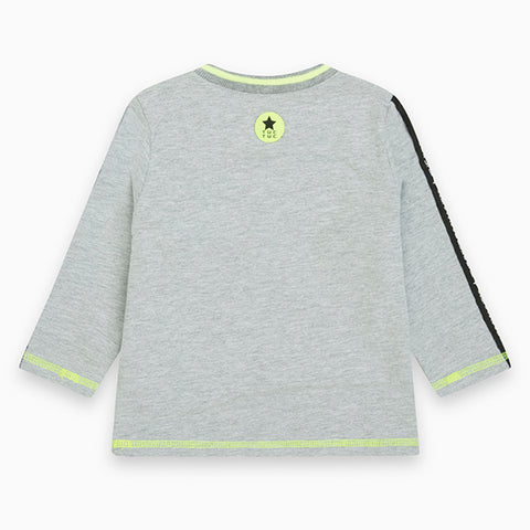 T-shirt della Linea Abbigliamento Bambino Tuc Tuc con bottoncini sulle spalline, e fantasia in contrasto di colore nella parte centrale.