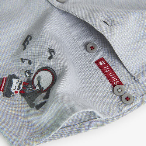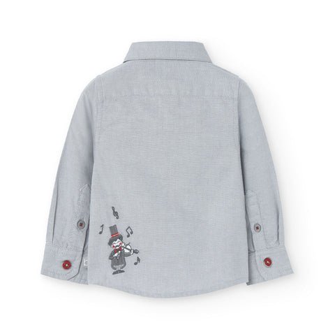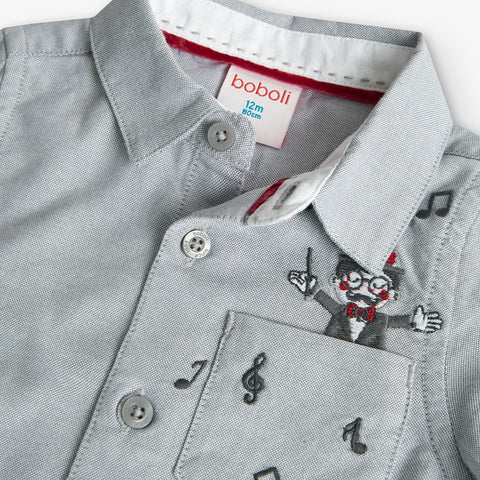Camisa à manches longues de la Ligne Vêtements Enfant Boboli, unie avec broderie au bas représentant un chef d'orchestre.