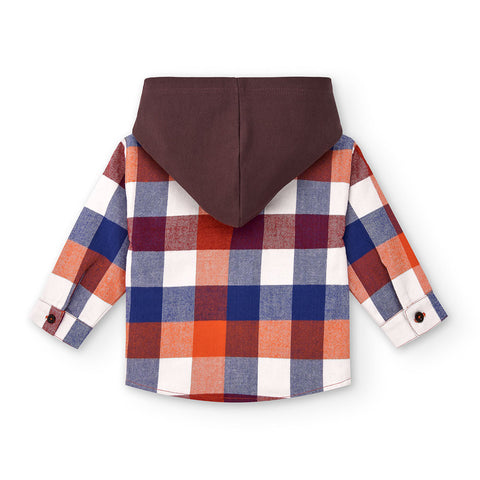 Chemise en flanelle de la Ligne Vêtements Enfant Tuc Tuc, avec motif à carreaux dans des tons chauds et capuche en coton uni.