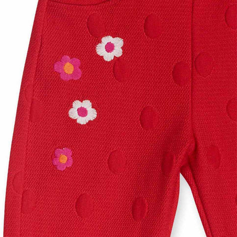 Pantalon de la Ligne Vêtements Fille Tuc Tuc, avec des fleurs brodées à l'avant et de fausses petites poches.