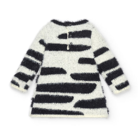 Robe en maille de la Ligne Vêtements Fille Tuc Tuc, avec petites poches à l'avant et yeux brodés.