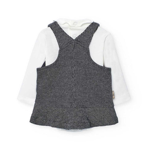 Composition : Pelele : 98%coton 2%élasthanne Pantalon : 90%coton 10%polyester Doublure : 100%coton Instructions de lavage : Lavage en machine, température maximale 30°C. Ne pas utiliser d'eau de Javel. Ne pas sécher en machine. Repasser à basse température, maximum 110°C. Ne pas nettoyer à sec.