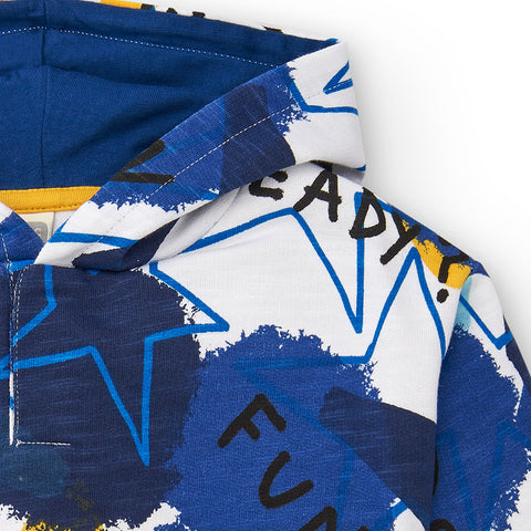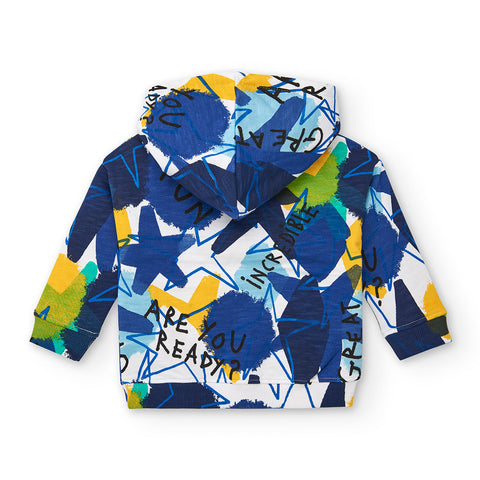 Sweat à capuche de la Ligne Vêtements Enfant Tuc Tuc, avec des motifs géométriques aux couleurs vives.
