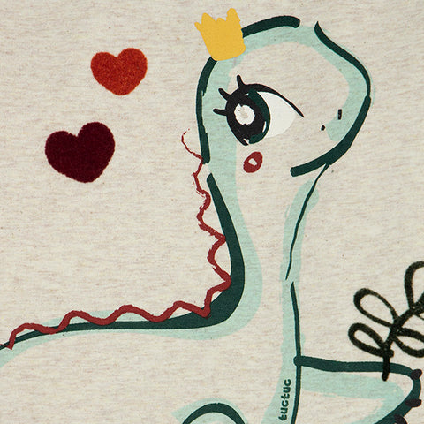 T-shirt à manches longues de la ligne vêtements fille Tuc Tuc, collection Highlands ; avec un volant sur l'épaule et un sympathique dinosaure sur le devant.