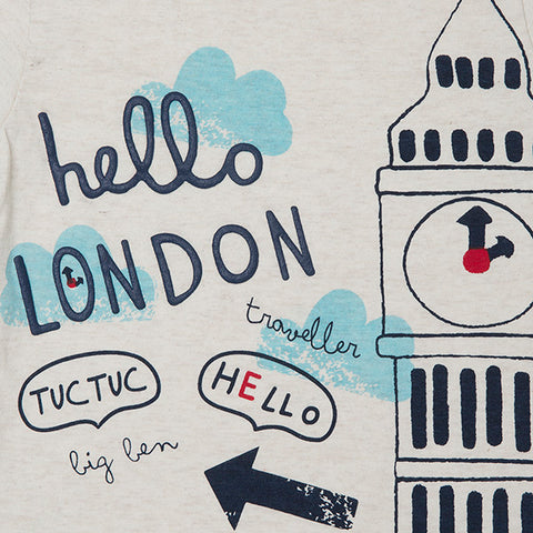 T-shirt de la ligne vêtements enfant Tuc Tuc, collection Hello London. Avec impression colorée sur le devant et boutons-pression sur l'épaule.