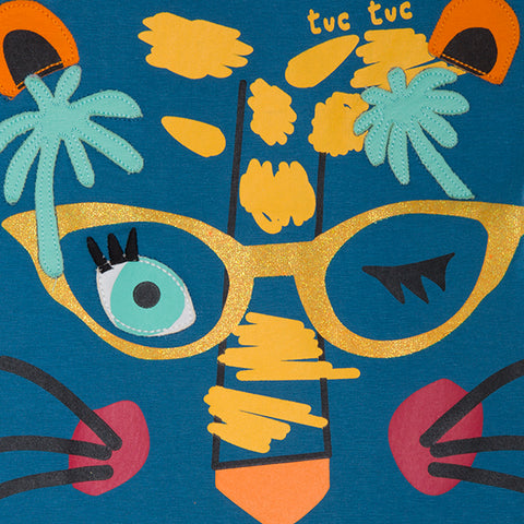 Maglietta de la ligne de vêtements pour fille Tuc Tuc, avec une coupe particulière sur la bretelle, impression colorée à l'avant avec des détails pailletés.